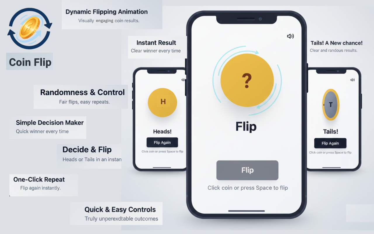 Need a Quick Choice? Flip a coin instantly! Simple heads or tails decision maker